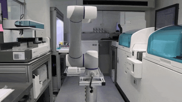越疆 CR10 協(xié)作機(jī)器人以輕量化設(shè)計(jì),靈活部署于德國(guó)大型醫(yī)療機(jī)構(gòu)實(shí)驗(yàn)室,高效精準(zhǔn)地執(zhí)行樣本收集、分揀、分析、歸檔處理等任務(wù),有效分擔(dān)實(shí)驗(yàn)室人員的重復(fù)性勞動(dòng),提升實(shí)驗(yàn)效率與精確度,并大幅降低人為錯(cuò)誤率,從而全面優(yōu)化實(shí)驗(yàn)室的整體運(yùn)作效率。