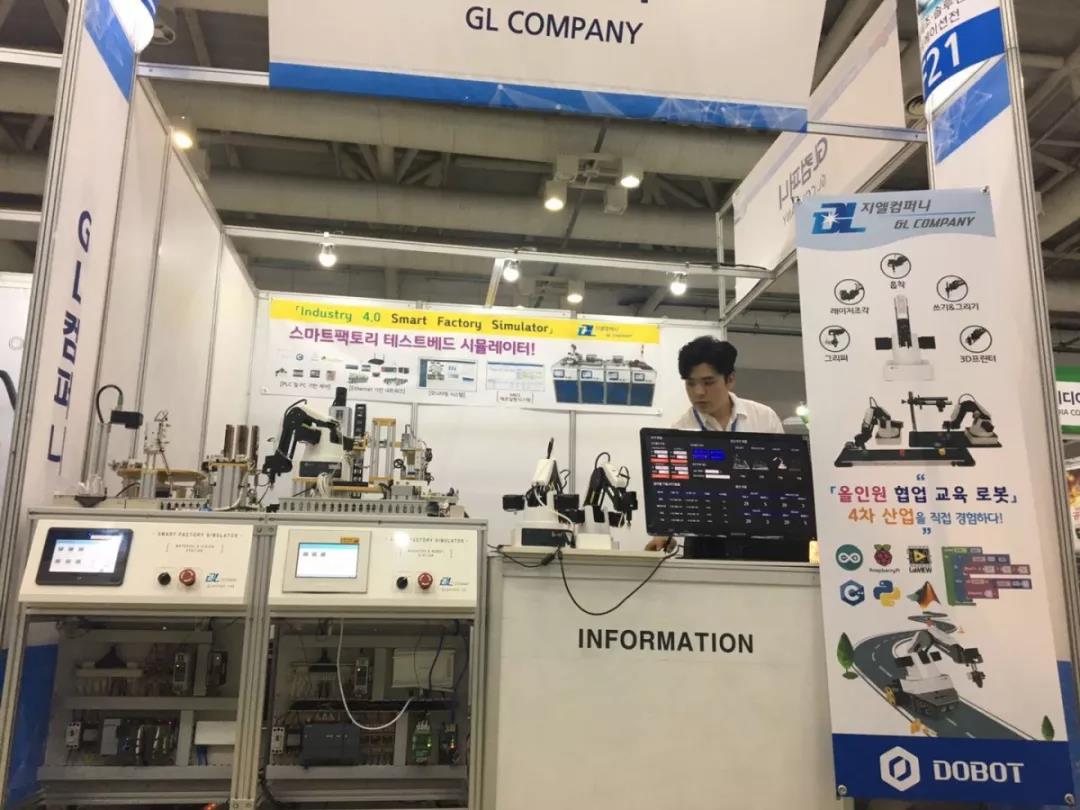 6 月 20 — 22 日,2019 國際物聯網•機器人展會在韓國光州舉辦,吸引超過一百萬人次參觀交流。展會上越疆的韓國合作伙伴展示了基于 DOBOT 魔術師、DOBOT M1 等越疆機器人產品的智慧工廠流水線。
