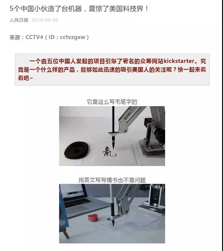 2016 年,一篇人民日?qǐng)?bào)文章《五個(gè)中國小伙造了臺(tái)機(jī)器,震驚了美國科技界》引爆網(wǎng)絡(luò),劉培超和他的四位小伙伴在深圳研發(fā)出的高精度高性價(jià)比桌面級(jí)智能機(jī)械臂迅速受到全球媒體關(guān)注。