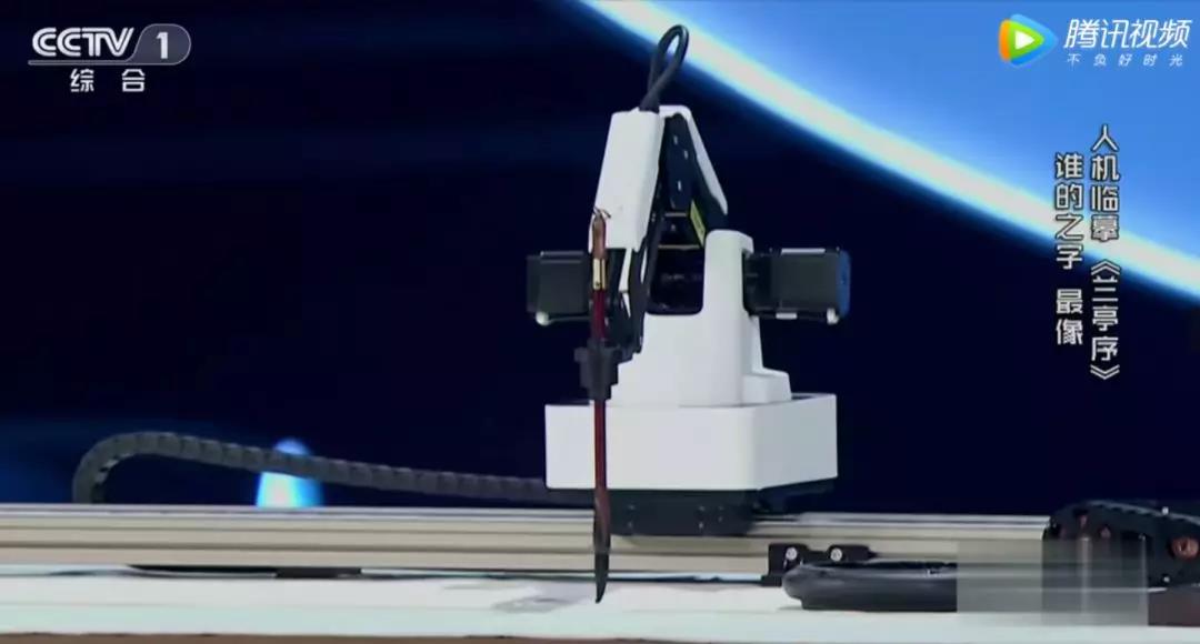 越疆書法機器人 DOBOT 魔術師內置強大的書法字庫,具有穩定性強,定位精度高的特點,配合特殊夾具,搭配滑軌設備,利用機器人控制毛筆的空間運動,蘸墨、舔筆,一筆一劃頗具大師風范。