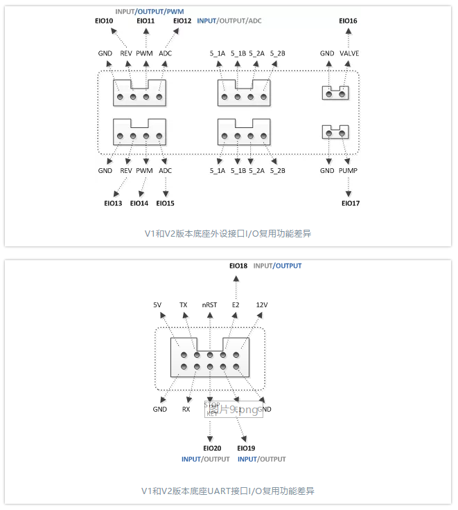 DOBOT 魔術師 V1 和 V2 版本 I/O 編號無變化,但是不同版本,I/O 復用功能有差異。