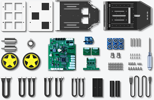 AI-Starter 由多個零部件構成,需要自己動手拼裝,借助有詳細圖解的搭建說明,只需一把小小的螺絲刀,即可快速完成搭建。