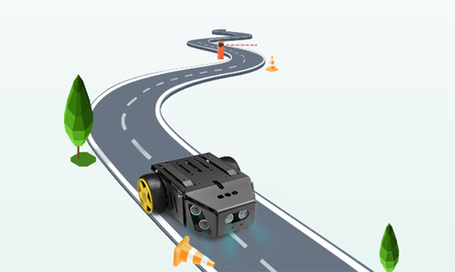 AI-Starter 內置紅外巡線、超聲波,顏色、光敏、地磁等多種傳感器,無需操控即可模擬自動駕駛場景,實現循跡避障等的功能,體驗自動駕駛的魅力。