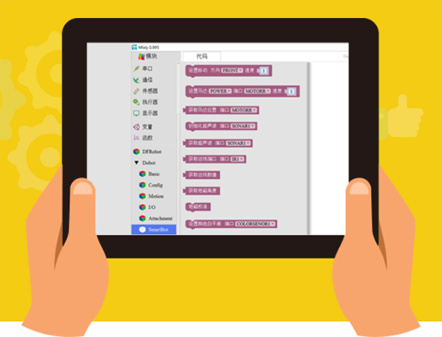 編程是未來世界的通用語言,小車搭配兼容 Arduino 的圖形化編程軟件,圖形化編程界面,簡單拖拽即可完成編程,使整個過程更像是一種游戲,讓編程更加生動。