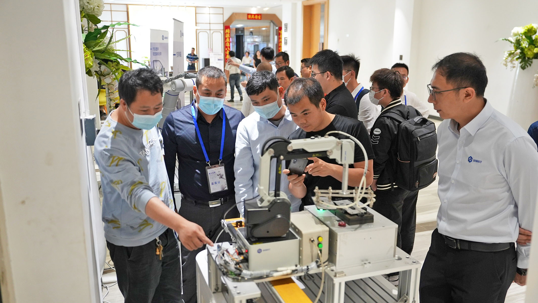 越疆認(rèn)證集成商代表現(xiàn)場(chǎng)分享了越疆機(jī)器人的產(chǎn)品優(yōu)勢(shì),以及采用越疆機(jī)器人設(shè)計(jì)的 PCB 貼標(biāo)、螺絲鎖附、標(biāo)簽檢測(cè)、自動(dòng)氦檢等集成方案,并展示了在終端客戶(hù)產(chǎn)線上的實(shí)際應(yīng)用效果。